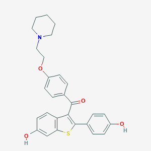 Raloxifene is a selective estrogen receptor modulator (SERM) that exhibits tissue-specific agonist and antagonist activity at estrogen receptors (ERs). It interacts with ERα and ERβ, influencing gene transcription and receptor-mediated signaling pathways.