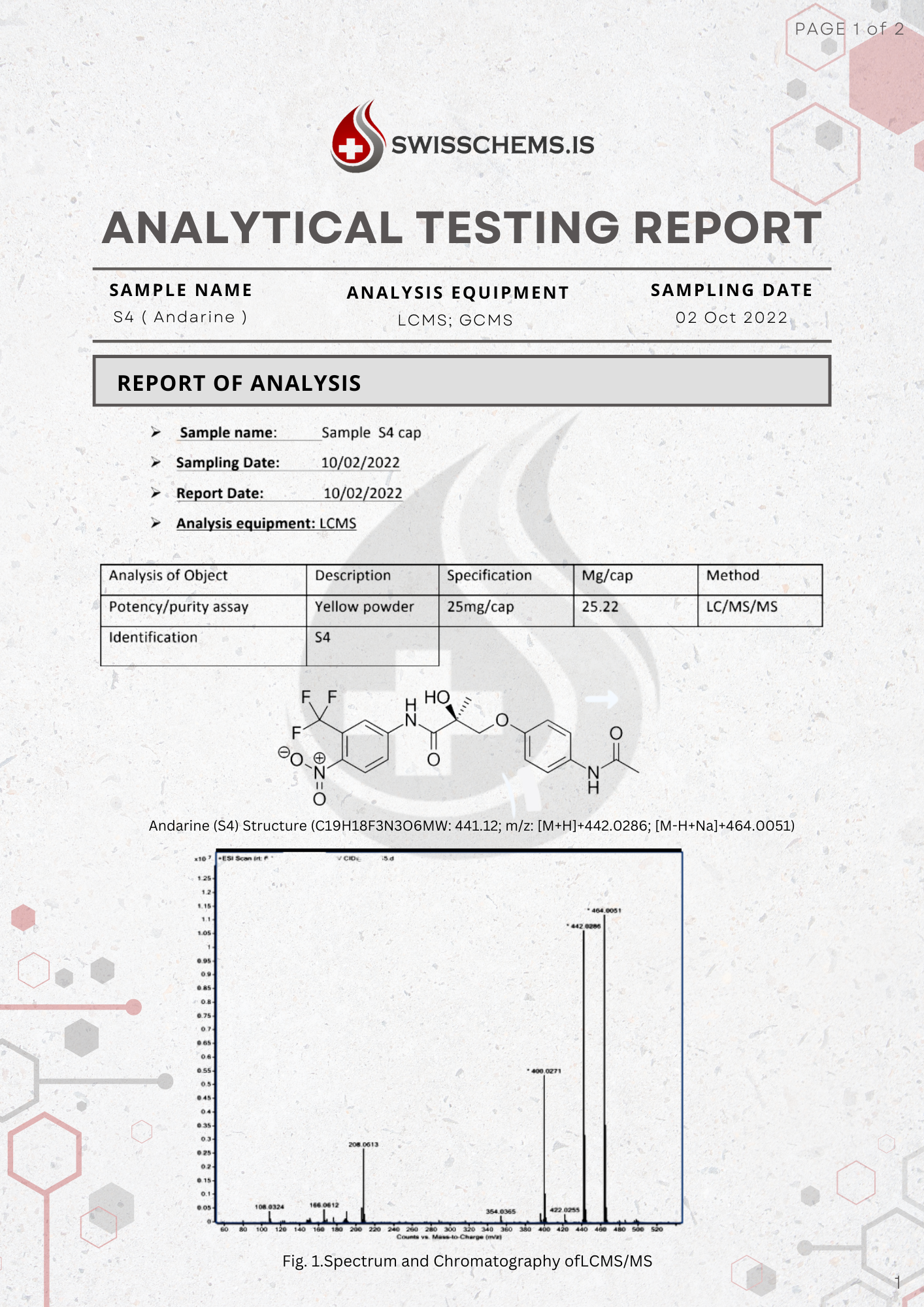 S4 (Andarine), (25mg/capsule) 60 Capsules For Sale